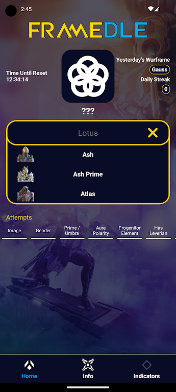 שחרר את הטנו הפנימי שלך ושלוט ביקום Warframe עם FrameDle ! משחק ניחושים יומי זה מאתגר את הידע שלך Warframe עם פאזל חדש כל 24 שעות. חושבים שאתם מכירים את ה-Warframes שלכם? העמד את המומחיות שלך למבחן וחשוף את המסגרת המסתורית. השווה את הציונים שלך עם עמית טנו והוכיח את השליטה האולטימטיבית שלך ב-Warframe. הורד את FrameDle היום והפך לאגדה במערכת!